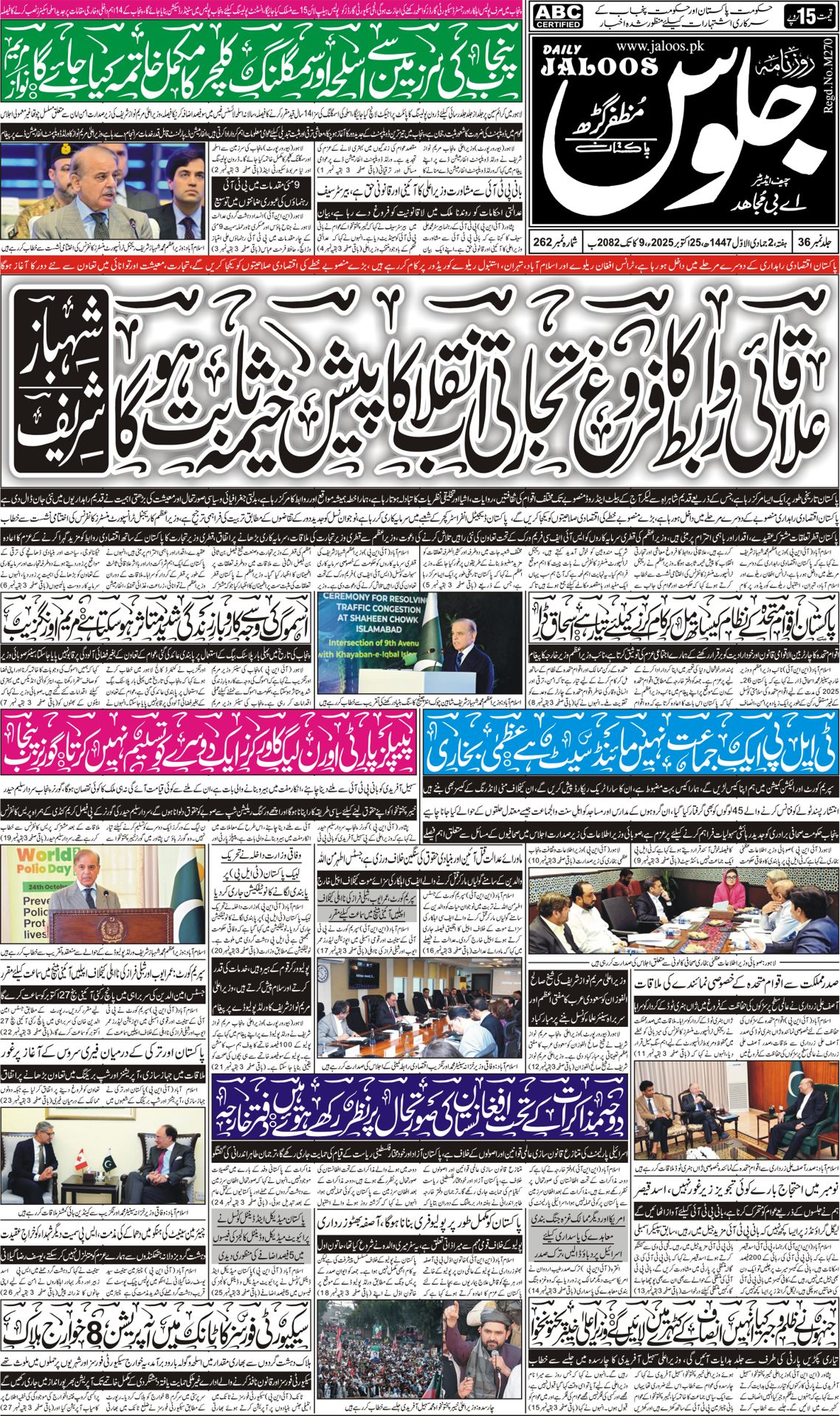 روز نامہ جلوس ہفتہ 25 اکتوبر 2025ء صفحہ اول