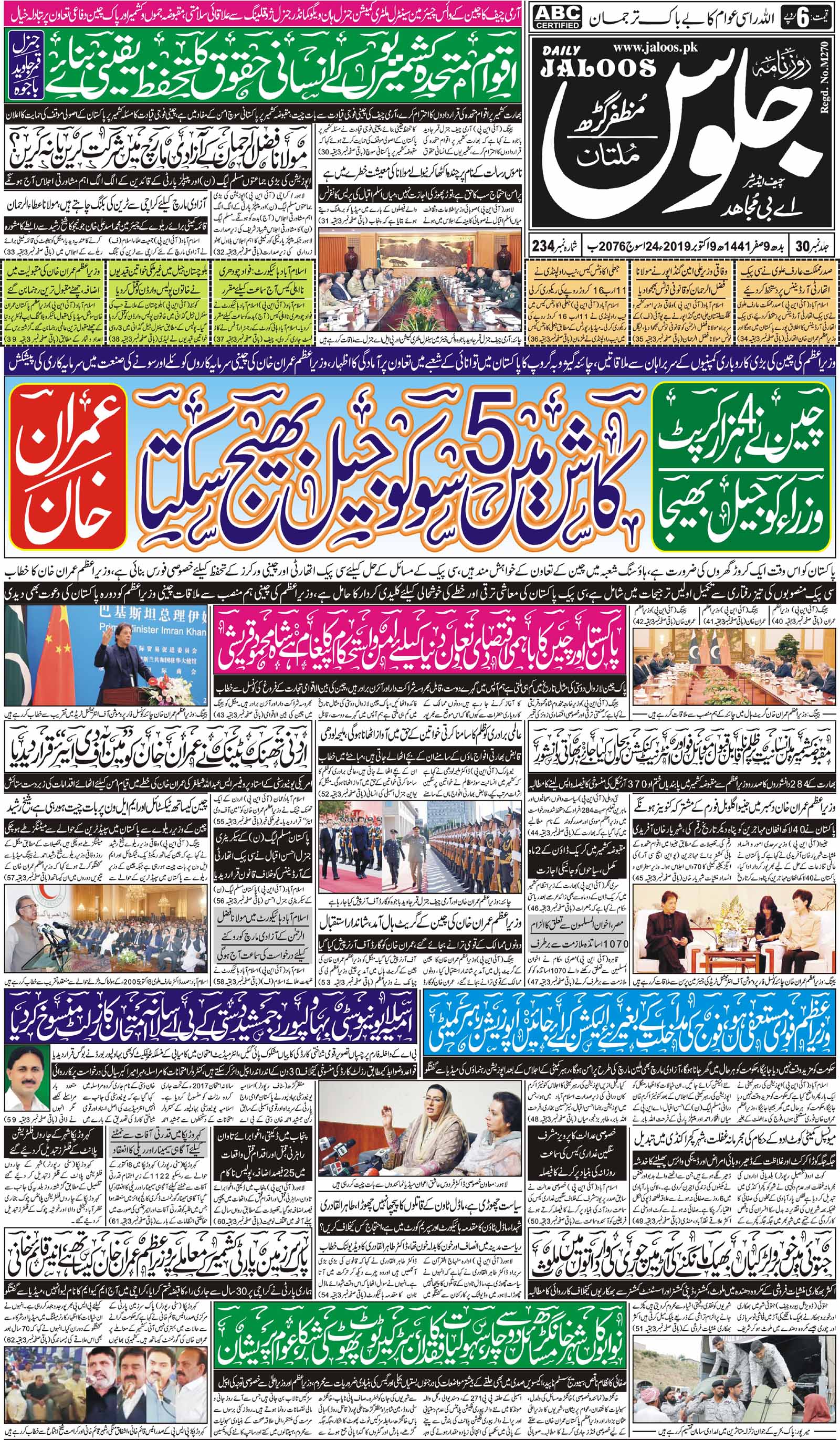 روز نامہ جلوس بدھ 09 اکتوبر 2019ء صفحہ اول