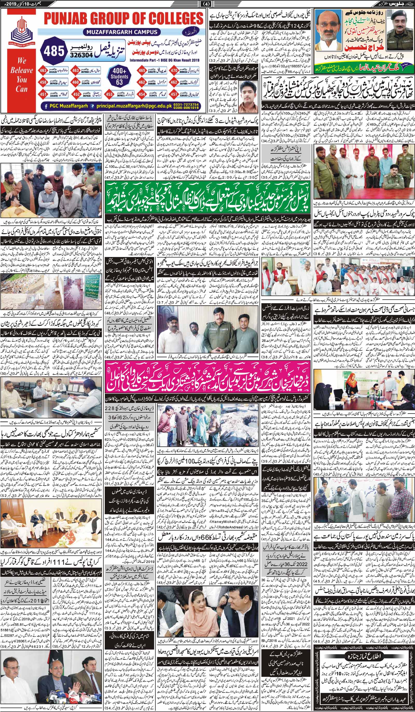 روز نامہ جلوس جمعرات 10 اکتوبر 2019ء صفحہ نمبر 4