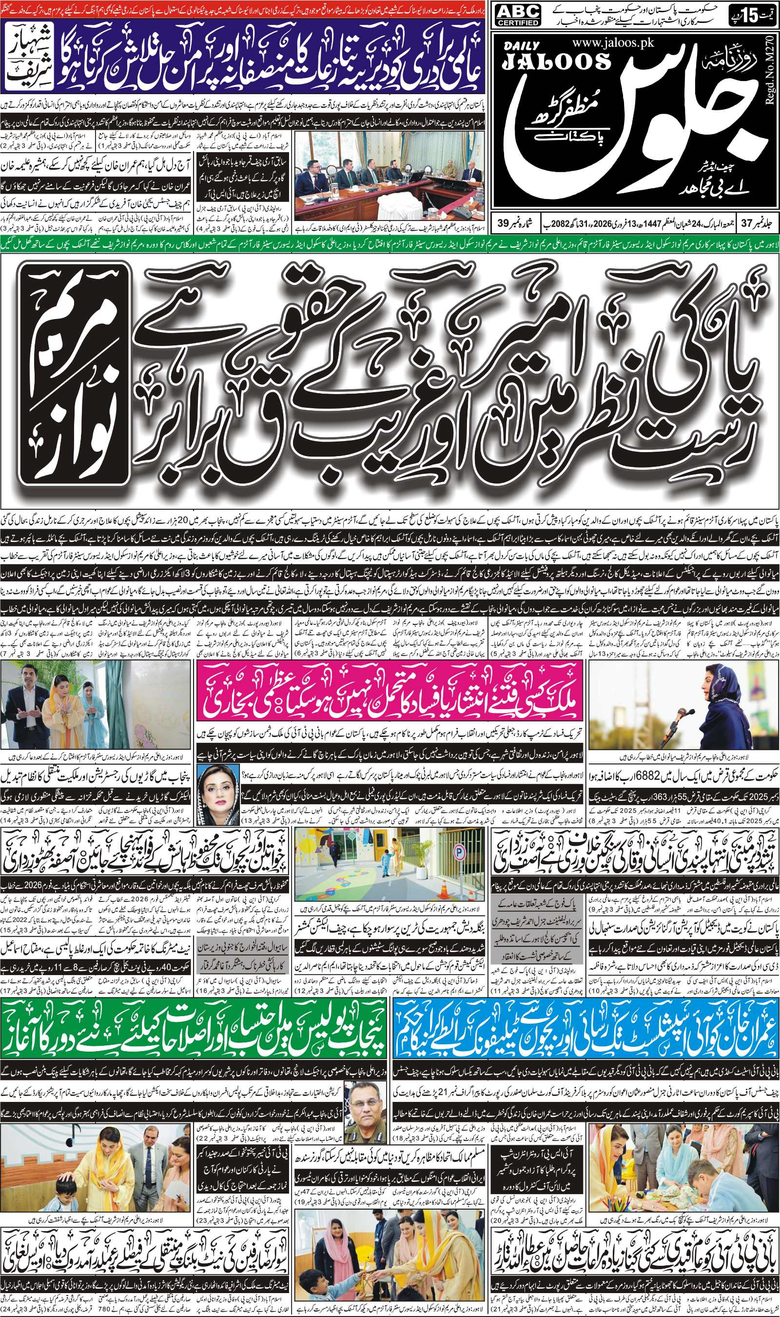 روز نامہ جلوس جمعہ 13 فروری 2026ء صفحہ اول