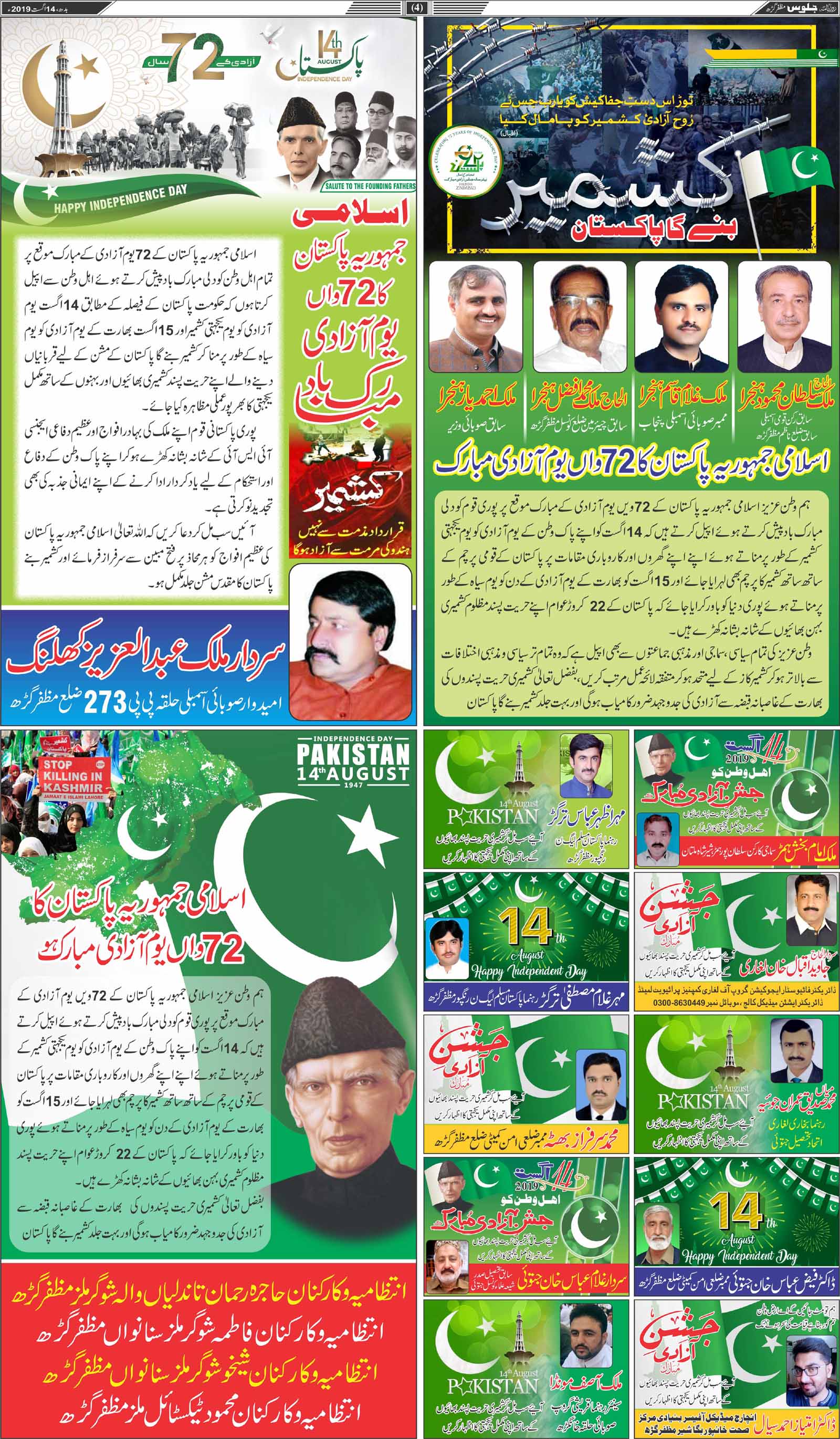 روز نامہ جلوس بدھ 14 اگست 2019ء صفحہ نمبر 4