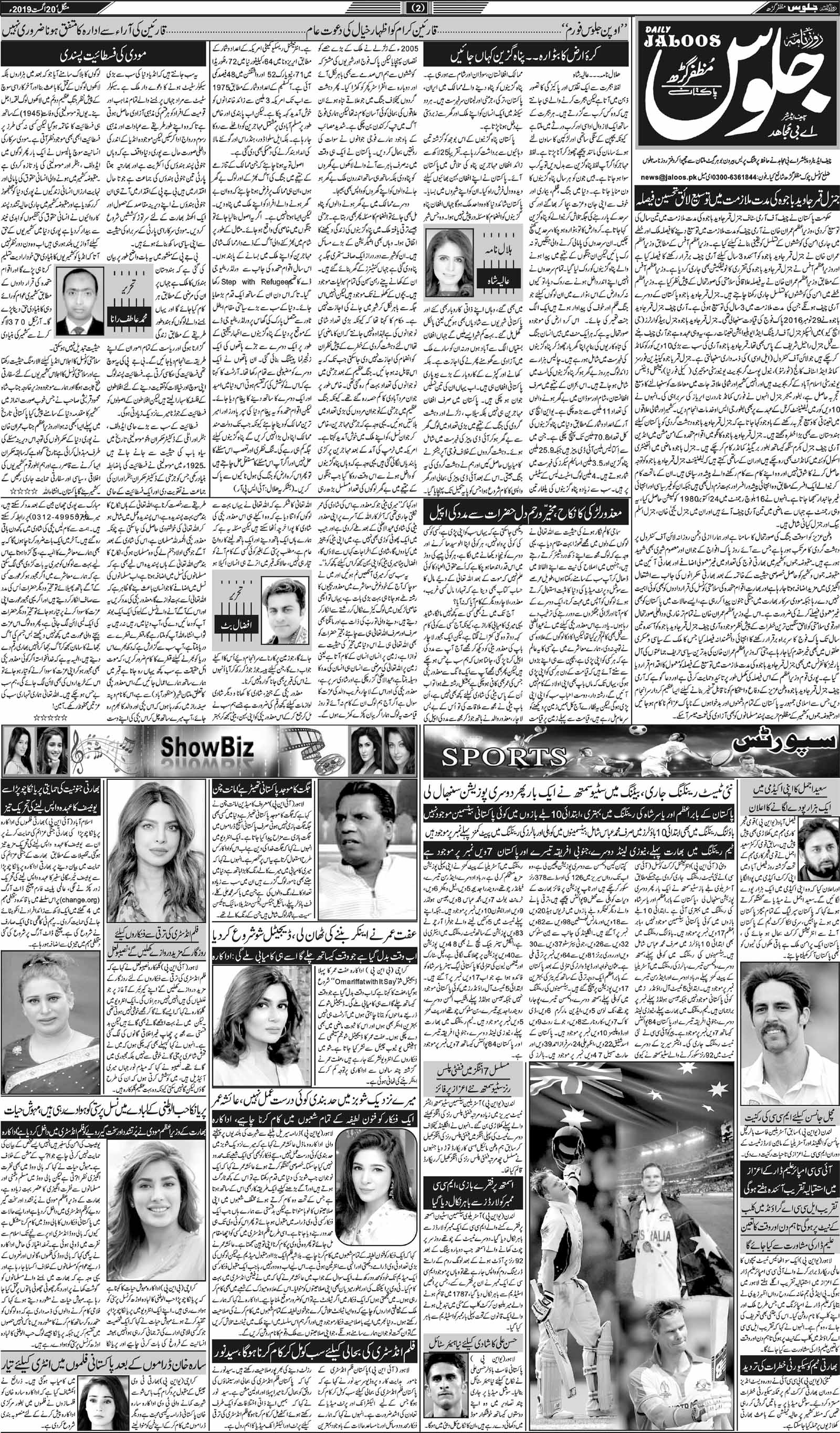 روز نامہ جلوس منگل 20 اگست 2019ء صفحہ نمبر 2
