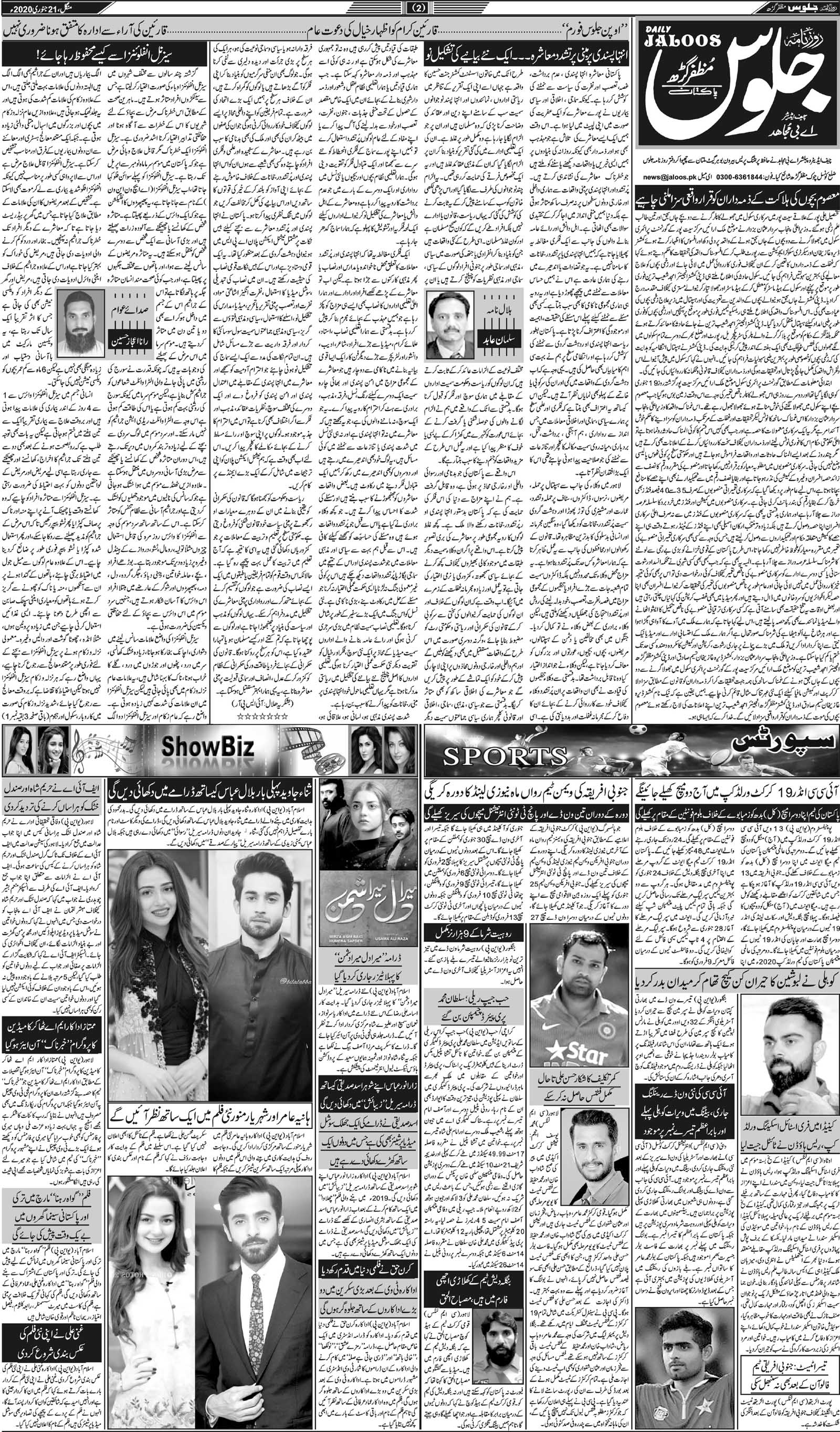 روز نامہ جلوس منگل 21 جنوری 2020ء صفحہ نمبر 2