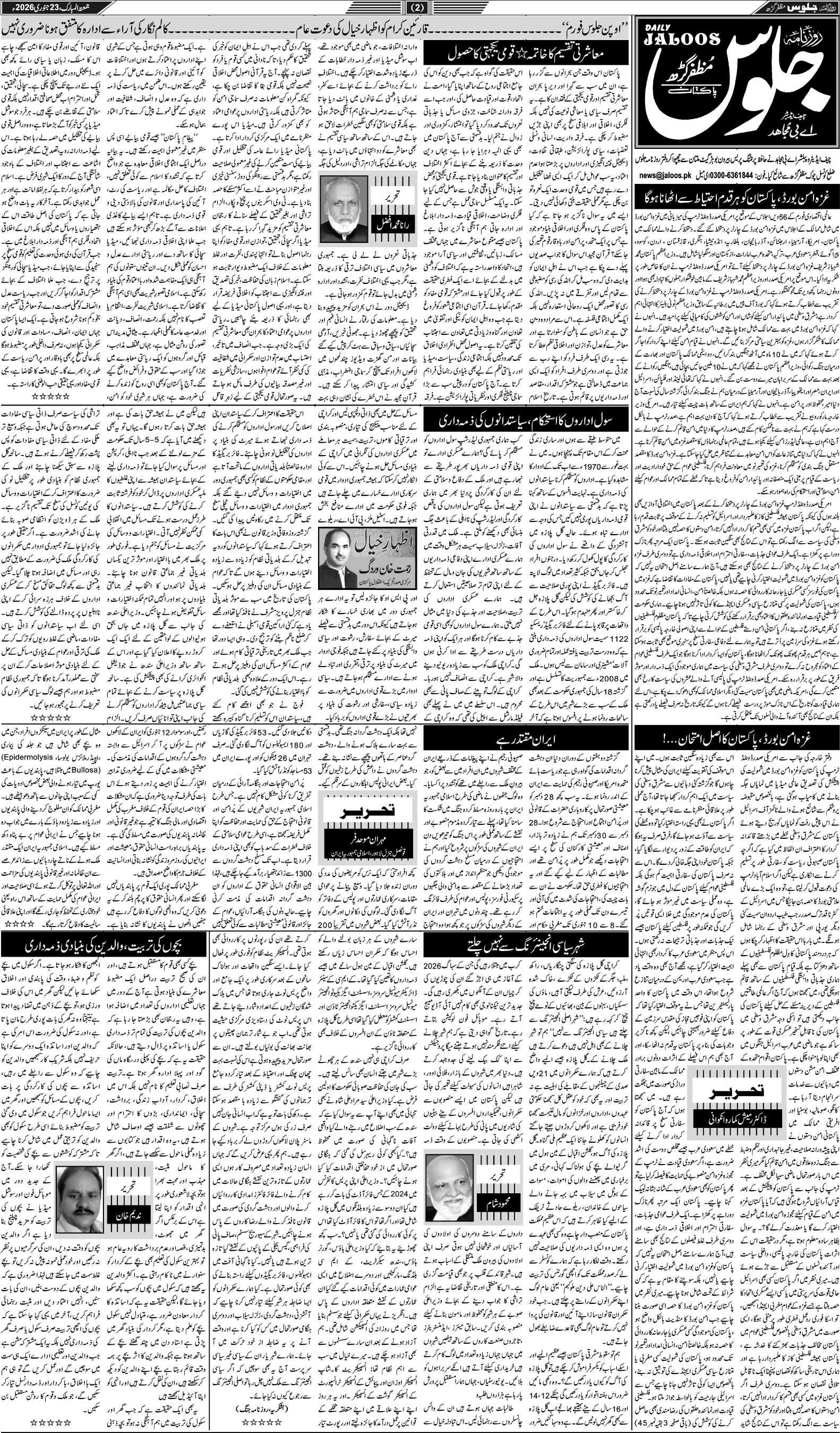 روز نامہ جلوس جمعہ 23 جنوری 2026ء صفحہ نمبر 2