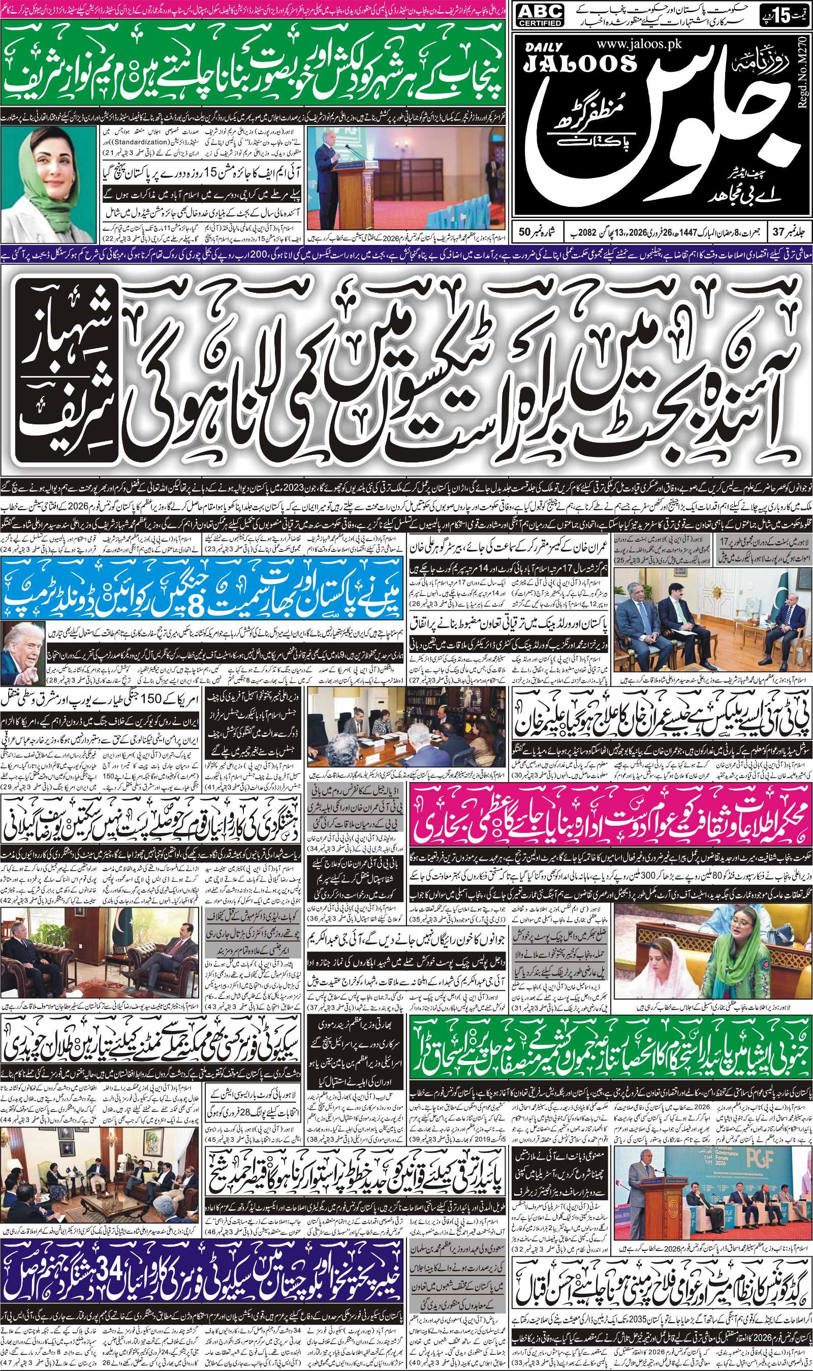 روز نامہ جلوس جمعرات 26 فروری 2026ء صفحہ اول