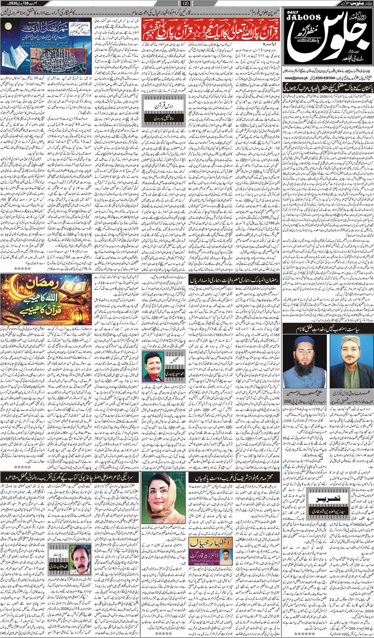 روز نامہ جلوس جمعرات 26 فروری 2026ء صفحہ نمبر 2